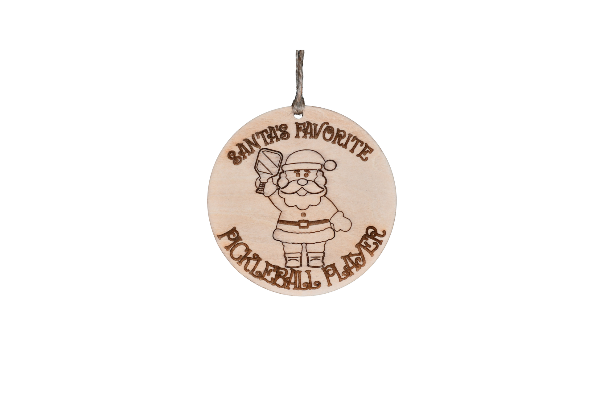 1 Layer Pickleball Ornament - Santa - Laser Engraved Wood | Made in America