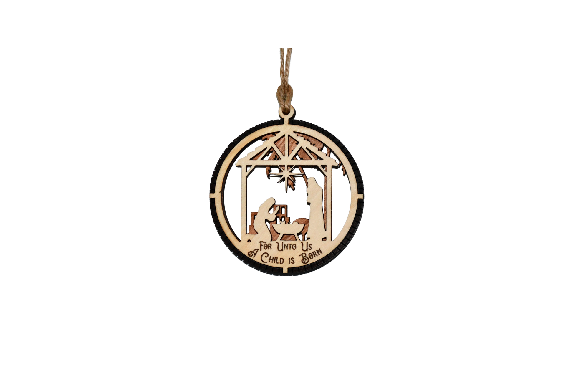 2 Layer Nativity Christmas Ornament - Laser Engraved - Baby Jesus - Tree - Made in America
