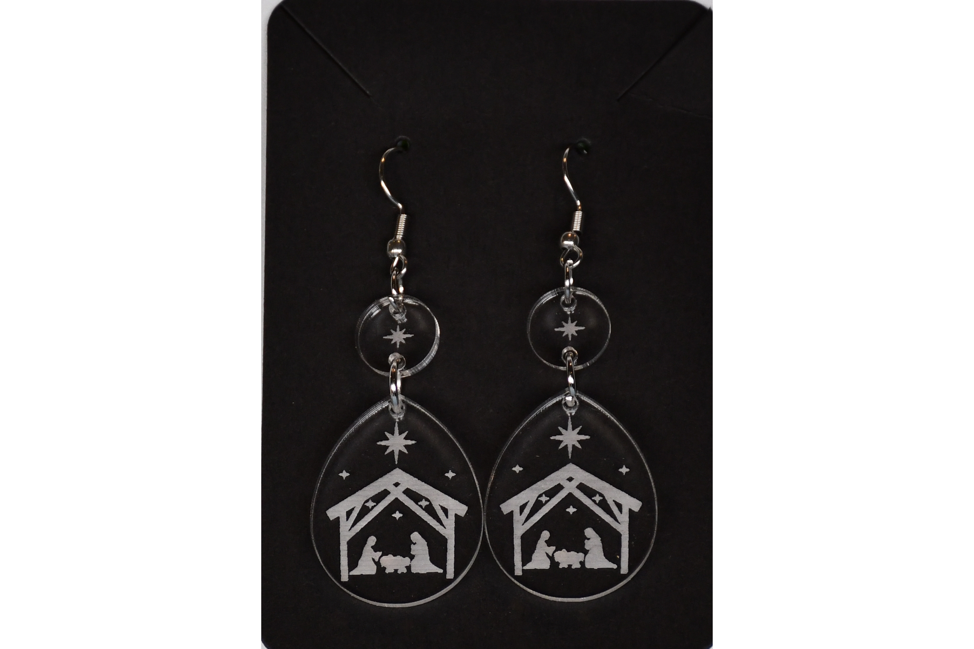 CELEBRATE CHRISTMAS WITH THESE TIMELESS NATIVITY EARRINGS. PROUDLY MADE IN THE USA WITH DOMESTIC ACRYLIC!